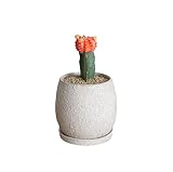 【観葉植物のパーフェクトグリーン】ヒボタン【緋牡丹】ベージュ鉢植え 陶器鉢 カラフルサボテン オレンジ 本物 インテリア 卓上 ミニ